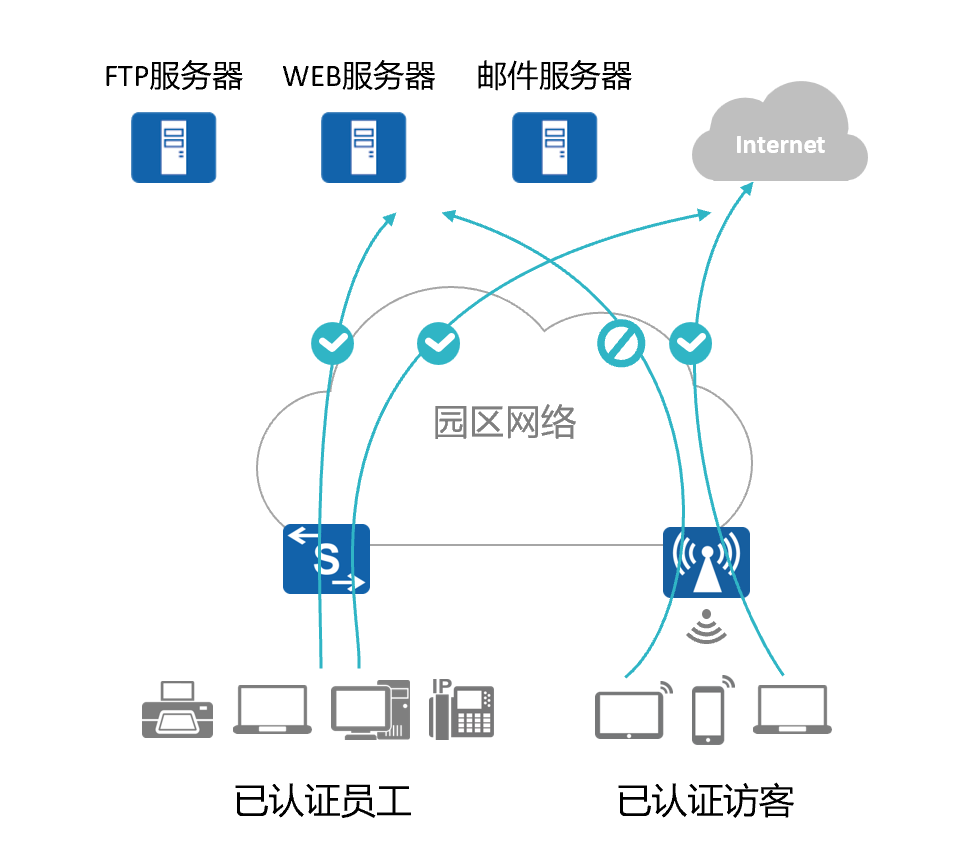 • 出于對安全問題的考子和慮,園區網絡不能(néng)對所有終端開放(fàng照空)訪問權限,需要基于終端對應的用戶身(shēn)份和終筆件端狀态進行認證,不符合條件的終端不能(néng)接入月廠網絡。
